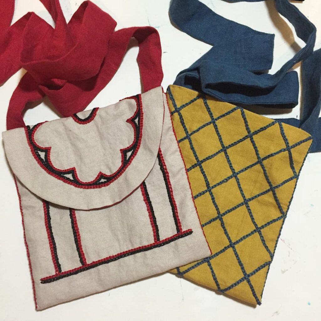 I only did one line of chain stitch. Since the overall motif was much denser than the other pouch, I didn’t think it needed bolder lines. Here it is all finished, ready to be sewn up. I lined both pouches (but forgot the take pictures) with coordinating linen by laying the pieces right sides together and machine sewing at the seam allowances. I clipped the curve of the cover flap and then turned them right side out and pressed, not unlike the Double Eagle Pouch I made some time ago. But that braided finish is a pain in the neck, and I kind of hate doing it, no matter how fantastic it looks.